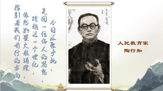 我们今日汇聚于此,是因为一位伟人的思想,跨越近一个世纪,依然如星火般璀璨,指引着我们前行的方向。他,就是人民教育家陶行知。