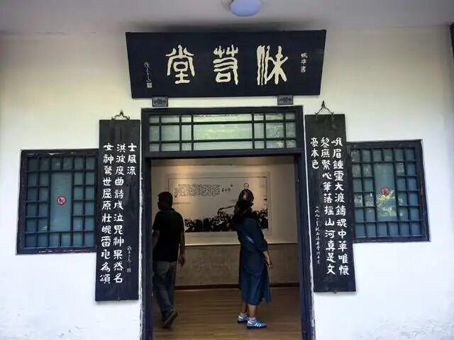 门额"沫若堂"三字为楚图南所书,门两侧是长对联。上联:峨眉钟灵,大渡铸魂,中华唯怀,黎庶系心,笔摇落山河,真是文豪本色;下联:女神惊世,屈原壮魄,雷电为颂,洪波度曲,诗成泣鬼神,果然名士风流。