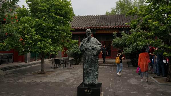 齐老人的第二座故居,就是前述立铜像的那处,位于东城区的雨儿胡同。北京中轴线的北部有地安门,地安门外万宁桥(后门桥)之西是水光潋滟的什刹海,之东就是胡同经纬成“蜈蚣”状的南锣鼓巷。这两块宝地都是元大都的遗存。北京中轴线申报世界文化遗产,方案中已把什刹海之南的“北海”(相对“中南海”而言)“挎”入其中了;其实,把西边这块水面和东边这块陆地一并囊入申遗,也是一个办法。南锣地区“蜈蚣”十六条胡同,雨儿其一也。相对于人潮涌动的“蜈蚣背”,作为“蜈蚣腿”的雨儿胡同要清静许多。齐白石故居堪称整个地区的一颗明珠,但造访者尤其寥寥,有文化心的游者到这儿透透气,换换感觉是个聪明的选择。