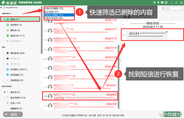 手机短信恢复方法3.数据蛙苹果恢复专家