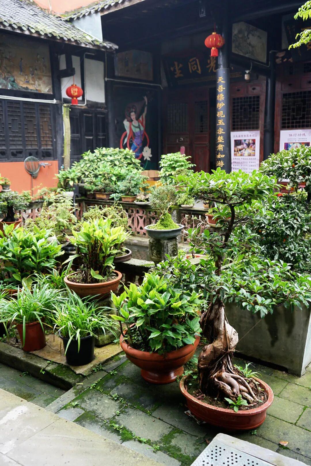 入口处的壁画,以李冰治水为题材而创作。这里既是李冰的纪念场所,也是道观。老君大殿前的天井摆满盆景,有着道教一贯的自然洁净风格。