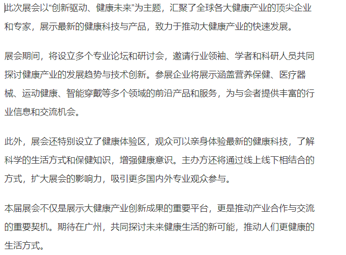 2026年第38届广州国际大健康展会将于2026年5月29日至31日在广州·保利世贸博览馆盛大举行。