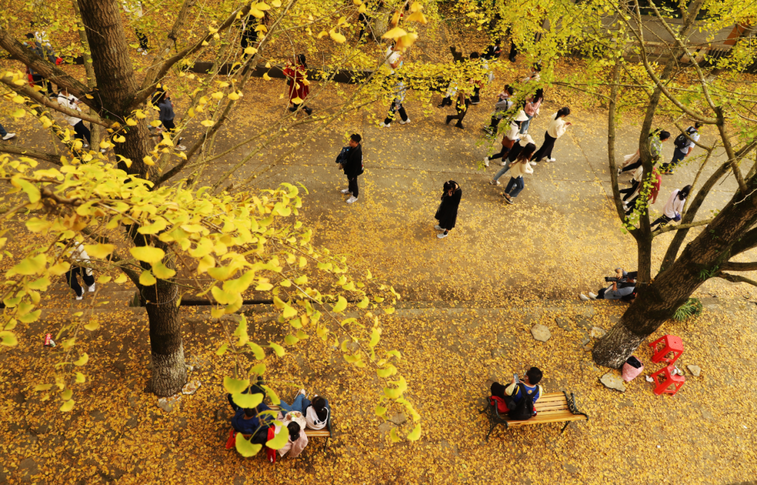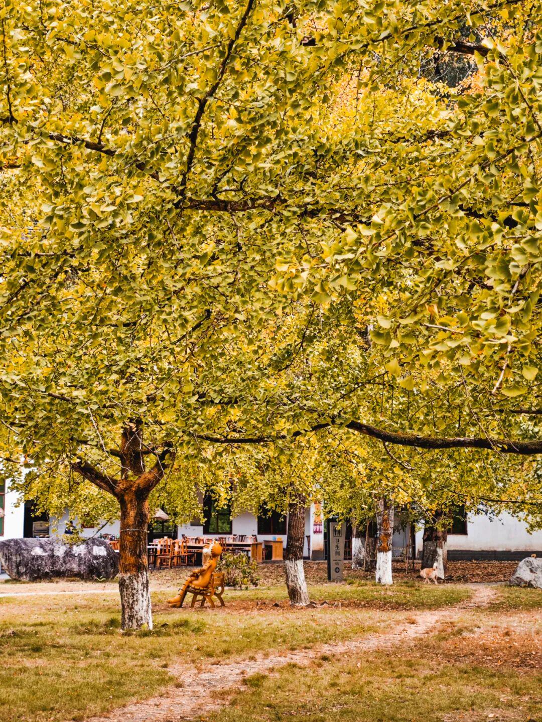 漫步其间,连片的银杏叶如金色蝶翼缀满枝头,地面铺着松软的“金毯”,阳光穿过叶隙洒下斑驳光影,整个村落都浸在温暖的金色光晕里。在这里拿起相机定格这份美好,让秋日的浪漫与美好成为永恒的记忆。