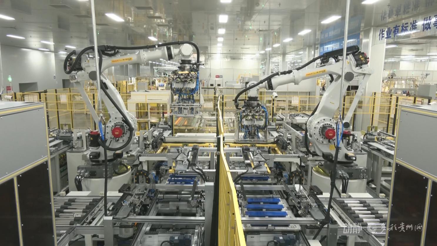 在贵阳这家从事新能源车电池生产的企业,自动化生产线正高速运转。电池产品不断下线。据介绍,车间的电池从生产到整车装配仅需4.5小时,每2分钟便可产出一个电池包。依托吉利贵阳制造基地的带动,公司电池包年产量约18万套,今年上半年产值超8亿元。