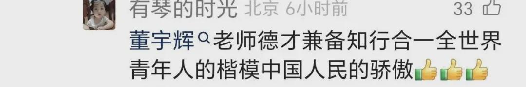 “董宇辉老师德才兼备知行合一全世界青年人的楷模中国人民的骄傲。”