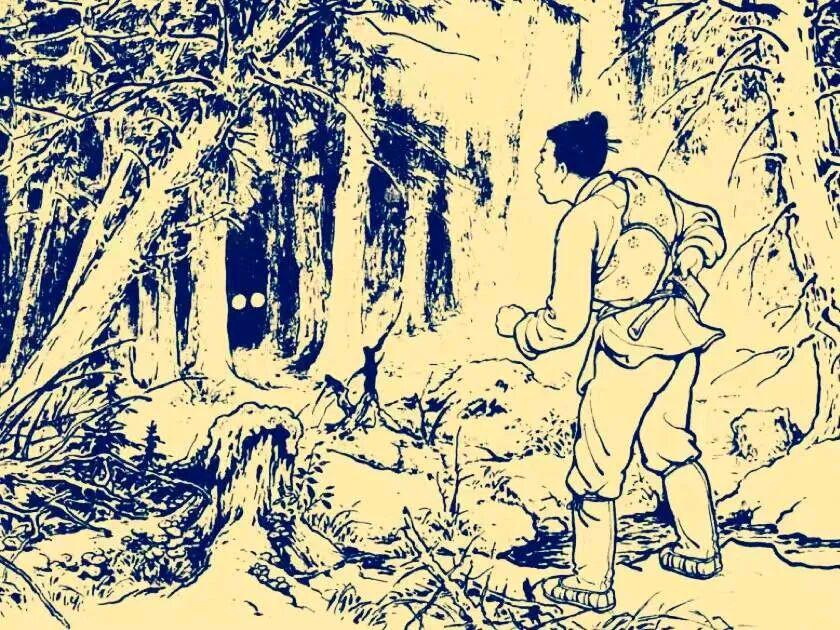 雨终于停了,可雨后的山路湿滑难行,王小无奈,只好放弃打柴,准备回家。他挎上背架,拿起胡琴,刚走出洞口,一眼便瞧见旁边躺着个半死不活的狐狸。王小心里一阵嘀咕:“哼,今天运气还不错,没打上柴,却捡回这么一个野味儿,足够我和娘吃两顿啦。”这么想着,他便伸出手,一把将狐狸抓起来,塞进装干粮的口袋里,系紧袋口,兴高采烈地背在身上往家走。