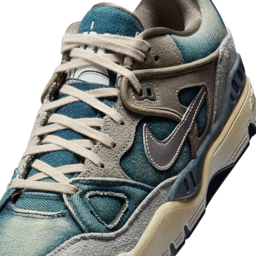 此番市售的浅色版本采用通体水洗蓝牛仔布,搭配鞋头浅灰色绒面革和灰色丝绒Swoosh打造,中底加入泛黄效果,最后以深蓝色外底收尾。