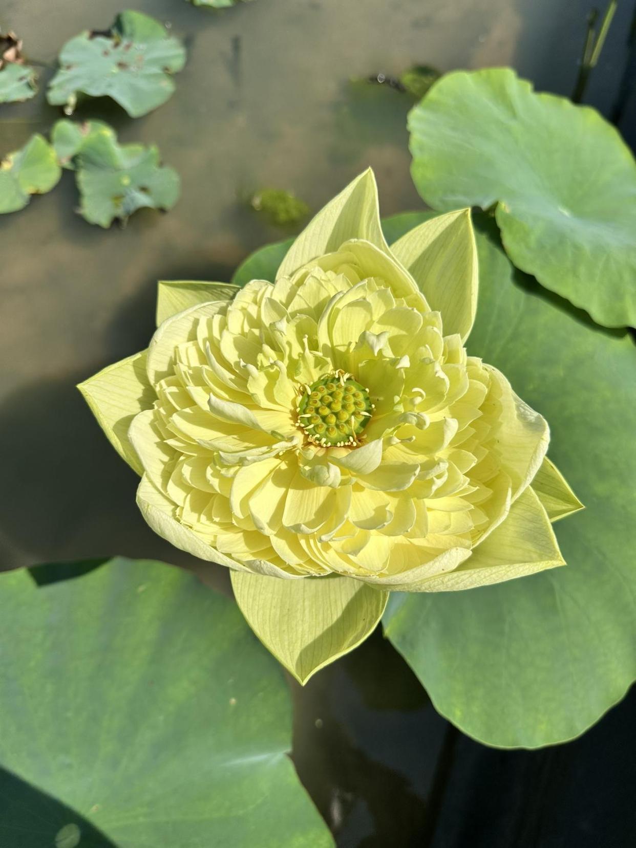 这盆叫“金陵凝翠”的荷花,开花时是清新的黄绿色,单瓣的花瓣透着一股素雅,气质格外高雅;