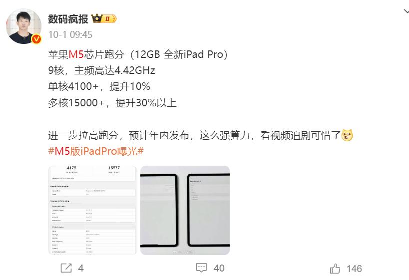 另外据科技博主@Wylsacom 近期发布的开箱视频中,提前揭露了 M5 芯片的性能配置。