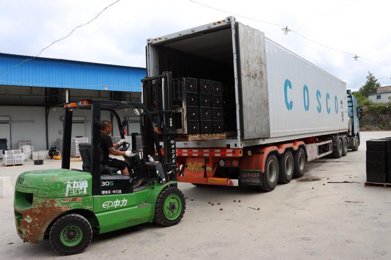 “我们的冷藏挂车,每一车猕猴桃大概在28吨到30吨之间,周边龙场、平滩、洒坪的很多果农,都把果子拉过来在这里集中分选,然后我们再发往新疆、吉尔吉斯斯坦、俄罗斯、迪拜、哈萨克斯坦等地。”猕猴桃果商戴安周说。