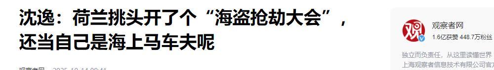 观察者网:沈逸:荷兰挑头开了个“海盗抢劫大会”,还当自己是海上马车夫呢