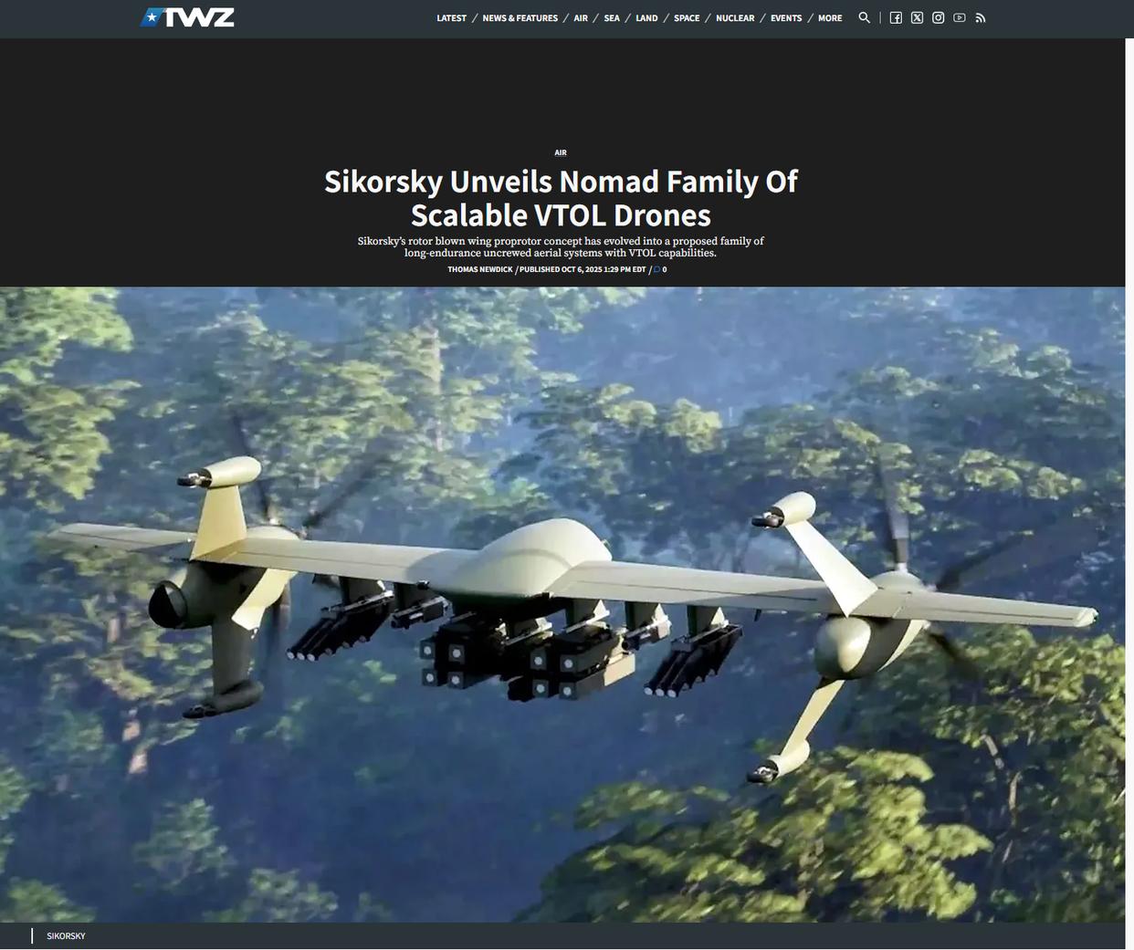 工业体系的严重衰退,导致美国的落地能力已相当存疑,但美国仍旧拥有强大的设计能力,至少PPT画的还挺好。近期,美媒《战区》报道称,西科斯基新推出了Nomad游牧民系列可扩展式垂直起降无人机。该系列无人机真的很适合陆军和海军陆战队所需。