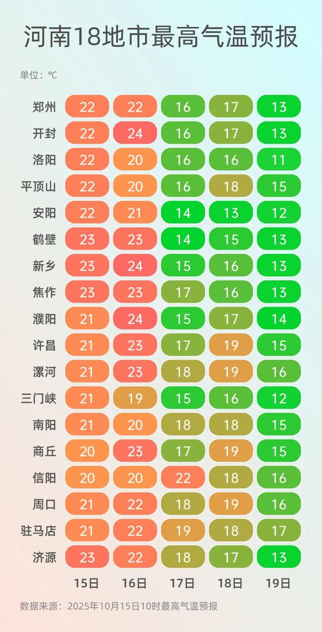雨水暂歇的信号已经明确,但随之而来的,是另一位天气主角——冷空气的登场。河南省气象台预告,17日至20日,一股强冷空气将自北向南影响全省。全省将刮起4级左右的偏北风,阵风可达6到7级。风不止,温骤降,全省气温将较前期下降8到12℃之多。