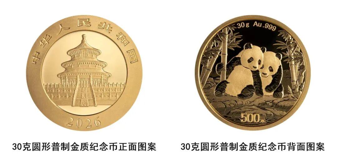 ◆ 央行定于2025年10月31日发行2026版熊猫贵金属纪念币一套,共15枚。