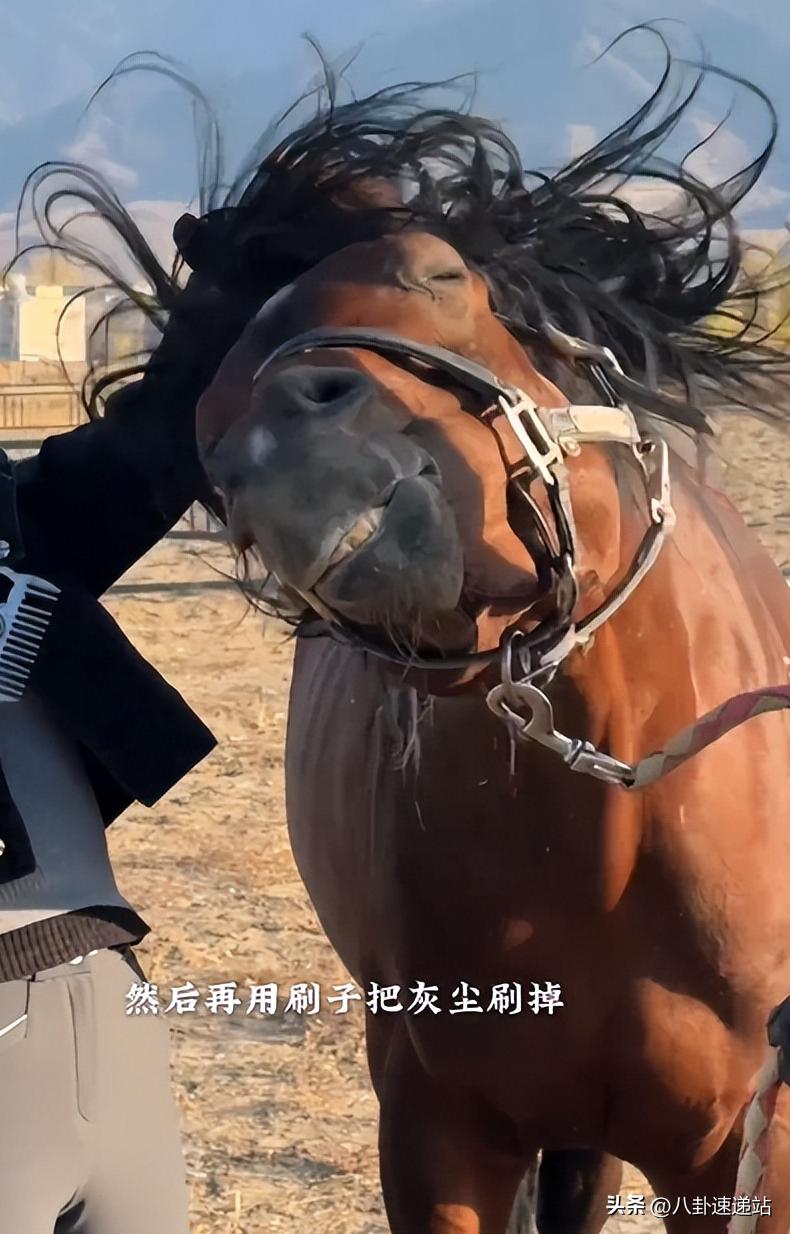 画面一转她又拿起蓝色的刷子,开始给小马刷脸,刷脸的时候小心翼翼的,就像照顾孩子一样,动作特别温柔。