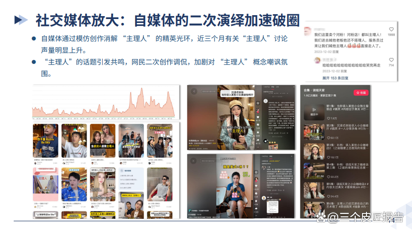 社交媒体与符号滥用影响:自媒体通过模仿创作消解 “主理人” 精英光环,网民二次创作加剧嘲讽氛围;“主理人” 从专业称谓沦为通用标签,商家强行挂钩高端时尚,导致消费者审美疲劳与反感,成为舆情反转导火索。
