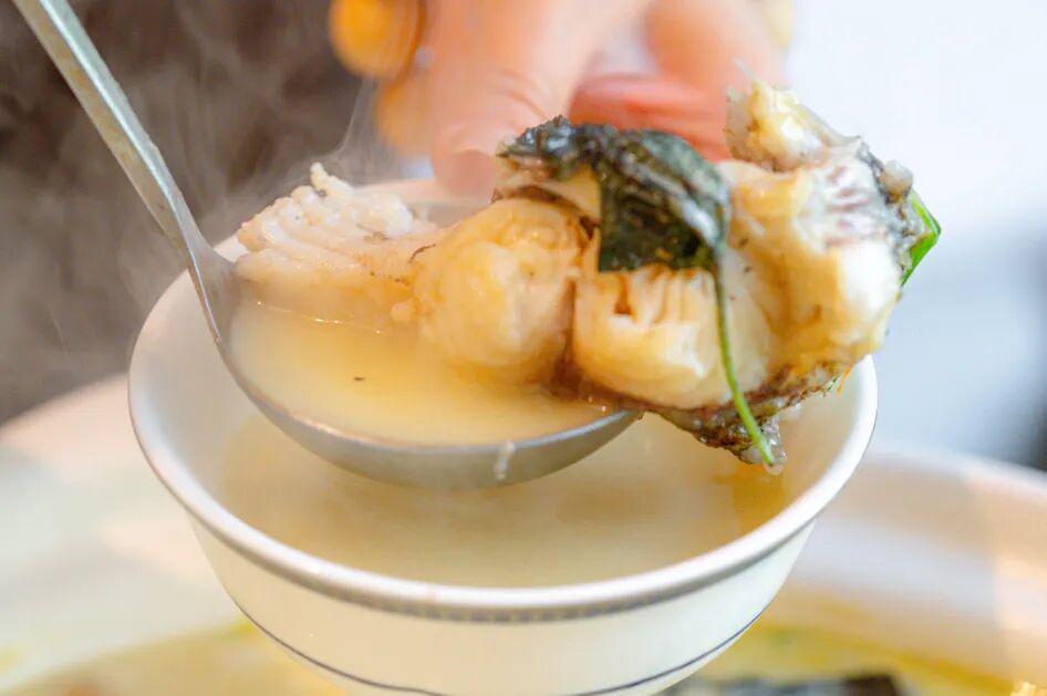 湖南的活鱼汤是非常有咸鲜味儿的那种,既可以白嘴喝汤+吃鱼肉,也特别适合泡饭!泡起来一口接一口,简直就是施了米饭消失术。汤煮一煮,店员就会过来示意关火,因为越煮水越少,汤也会偏咸。建议是一上桌就开始品~