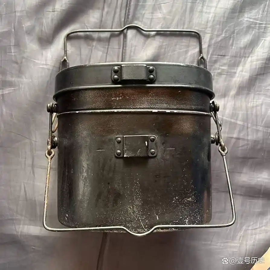 除了基本的盛放食物功能外,九二式饭盒在细节设计上也颇为用心。饭盒上除了设计有铁丝提手便于携带之外,盖子里还有专门放筷子和勺子的隔层。这个铁丝提手看似简单,却在实际使用中发挥了重要作用。士兵们可以通过提手轻松地拿起饭盒,无论是在行军途中转移还是在就餐时移动饭盒,都非常方便。而盖子里的隔层则体现了设计者对餐具收纳的考虑,将筷子和勺子放在专门的隔层中,可以避免它们与食物相互碰撞和污染,充分考虑了日军士兵在野外就餐的各种需求。