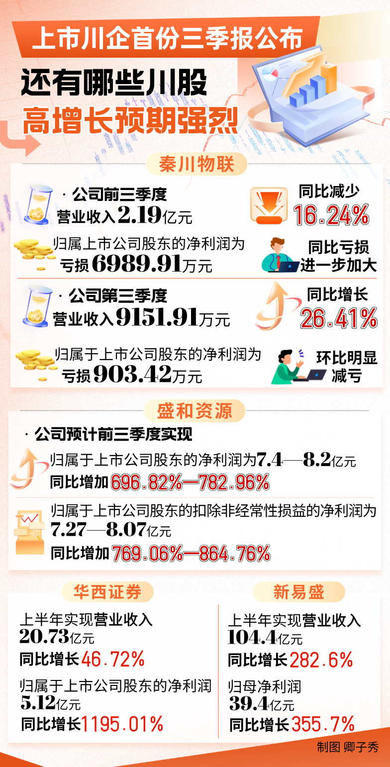 虽然目前仅有少数川股发布了三季报业绩预告,但从上半年的业绩表现以及经营情况来看,不少公司在前三季度甚至全年高增长预期强烈。综合中报业绩以及机构观点来看,华西证券、新易盛等川股业绩高增或是大概率事件。