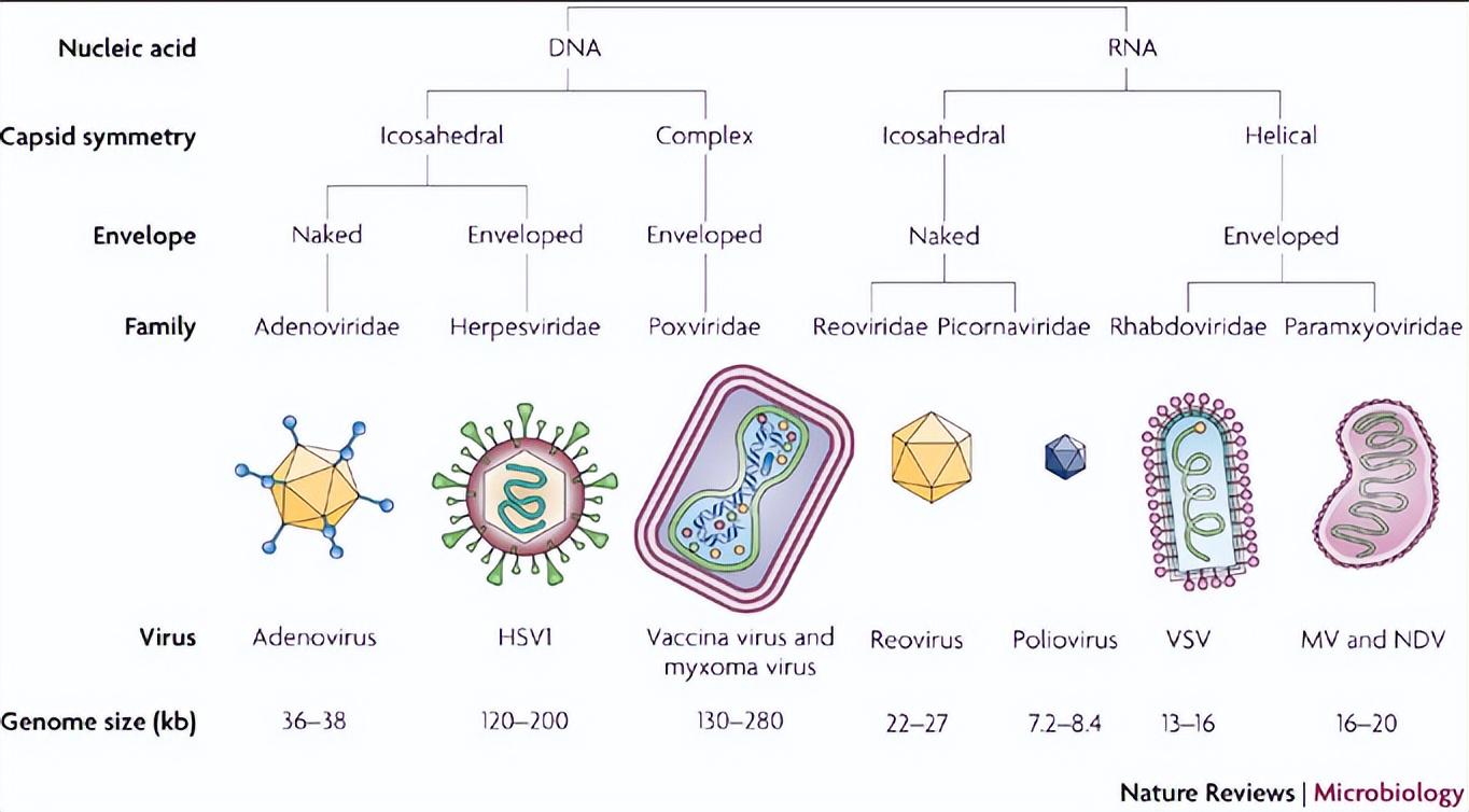 最常见病毒基本上是DNA病毒,一来,DNA是基本遗传物质;二来,双螺旋稳定性,使得病毒基因组不容易被降解或者改变,因此可以一定程度保持病毒稳定性。