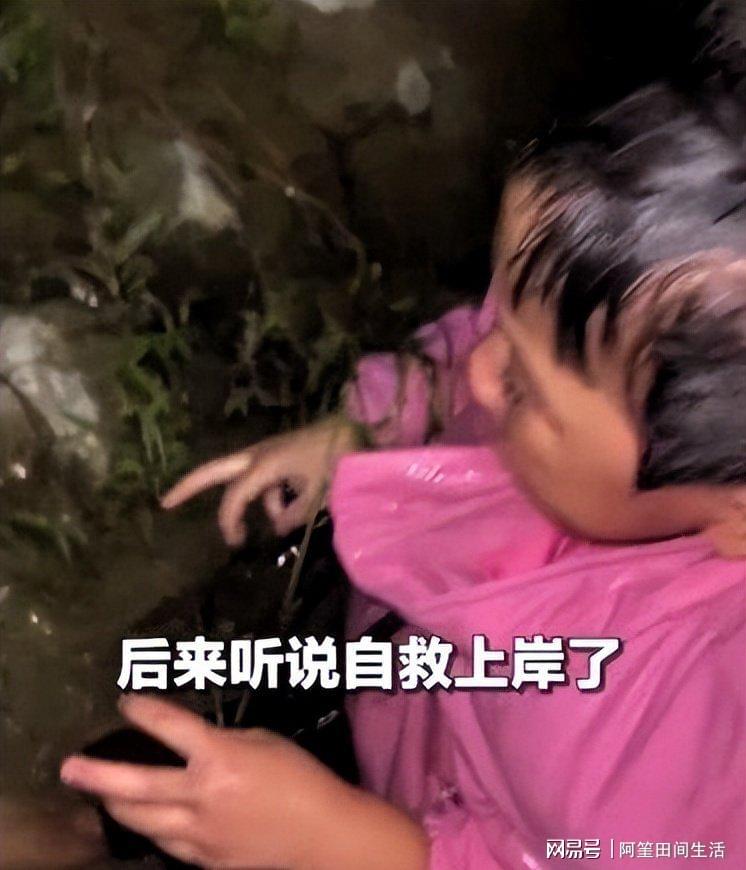 小女孩穿着粉色的羽绒服,一路被水流裹挟着顺河漂流,在途中还被水草缠绕,差点溺水,幸亏福大命大,碰到了贵人。