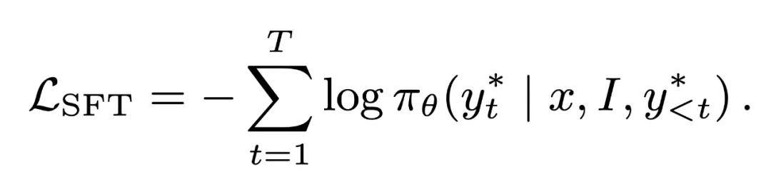 训练目标方面,苹果采用标准的因果语言建模(Causal LM)目标函数。给定一个多模态输入 (x, I),其中包括文本问题和对应图像、以及包含完整推理过程、工具调用和最终答案的多轮对话 y*,训练中的模型在给定所有前文 token 的条件下预测目标序列中的每一个 token。