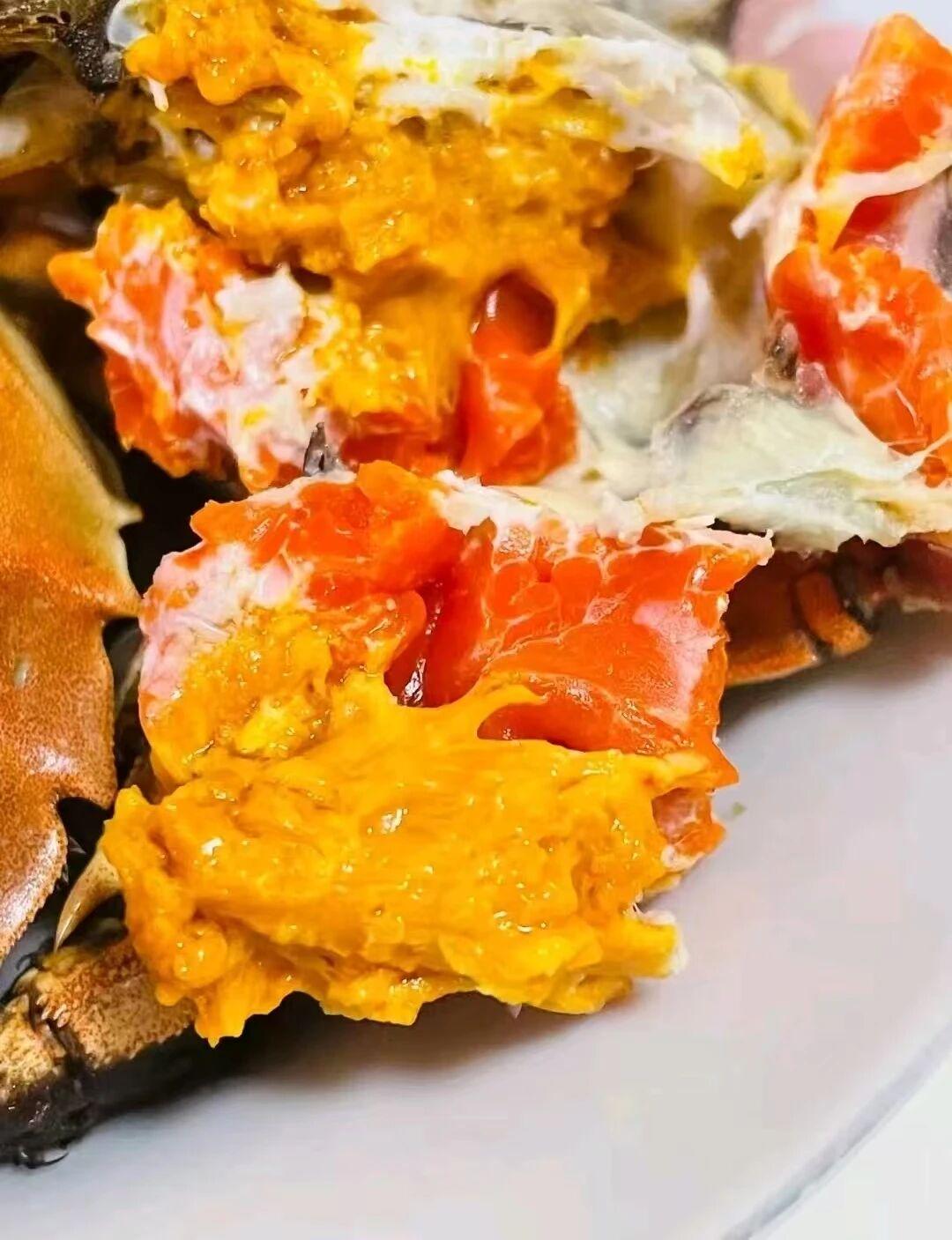 现在的母蟹肥得冒油,再等阵子公蟹的蟹膏又能拉丝了!