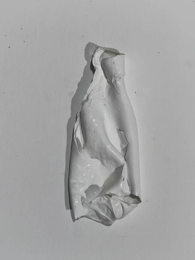 在第一组作品中,艺术家以A4纸的平面、被撕破重组的立体瓶子与莫兰迪色彩体系为核心媒介。这组被评论家视为“规约的悖论”的系列,将A4纸的标准化视为全球现代文明行政体制的隐喻,被撕破的瓶子则象征着物性对规训的突围,而覆盖其上的莫兰迪色系,则构成了另一种温和而稳固的文化权力体制。三者间的叠加与碰撞,形成了一场关于秩序、反抗与共存的视觉论辩。