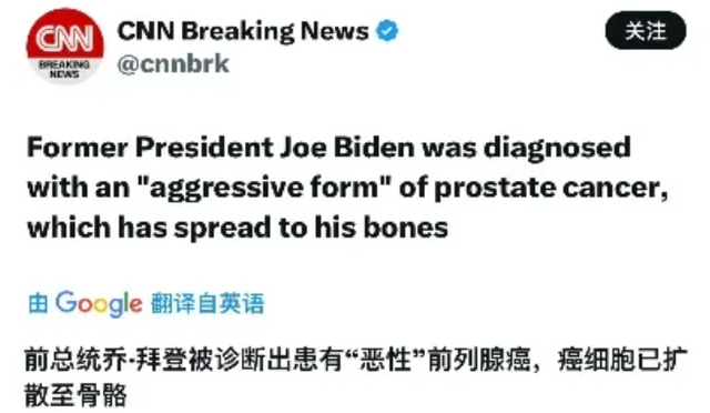 今年5月,美国前总统拜登确诊癌症,表示癌细胞已扩展全身,白宫启动紧急放射性治疗机制。