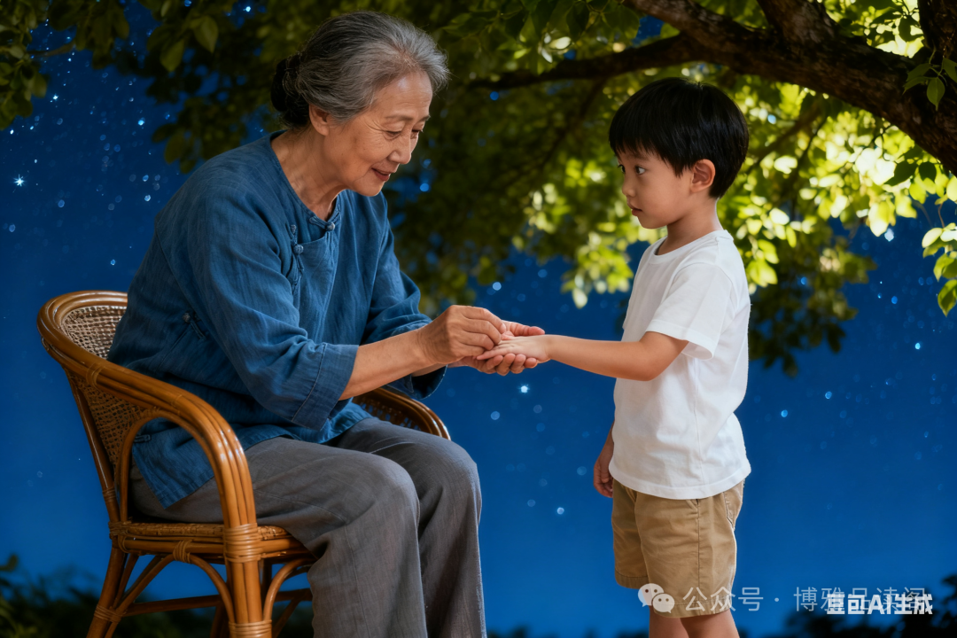 我总爱将小手塞到外婆那满是老年斑的、松树皮一般的手里,她便捏着我的指尖,就着昏黄的灯光,一个一个地数过去,口里念念有词,是那传了不知多少代的歌谣。