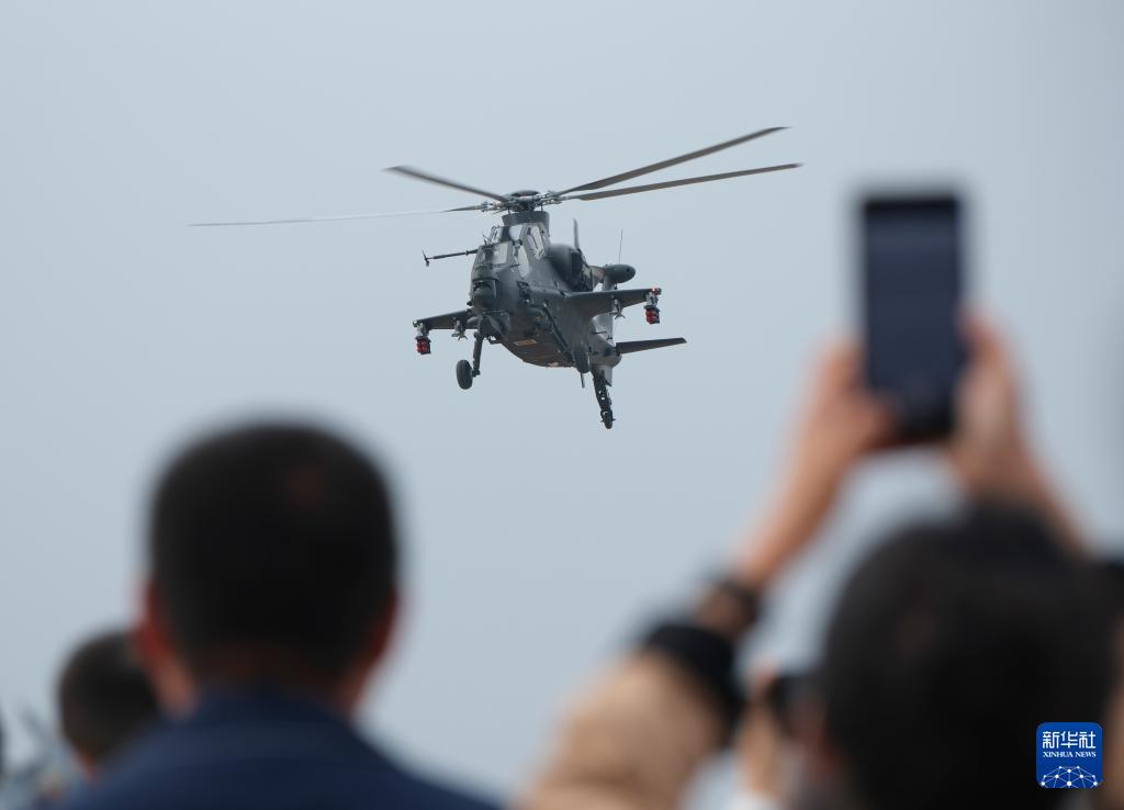 10月16日,在第七届中国天津国际直升机博览会开幕式上,观众观看装备静态展示。