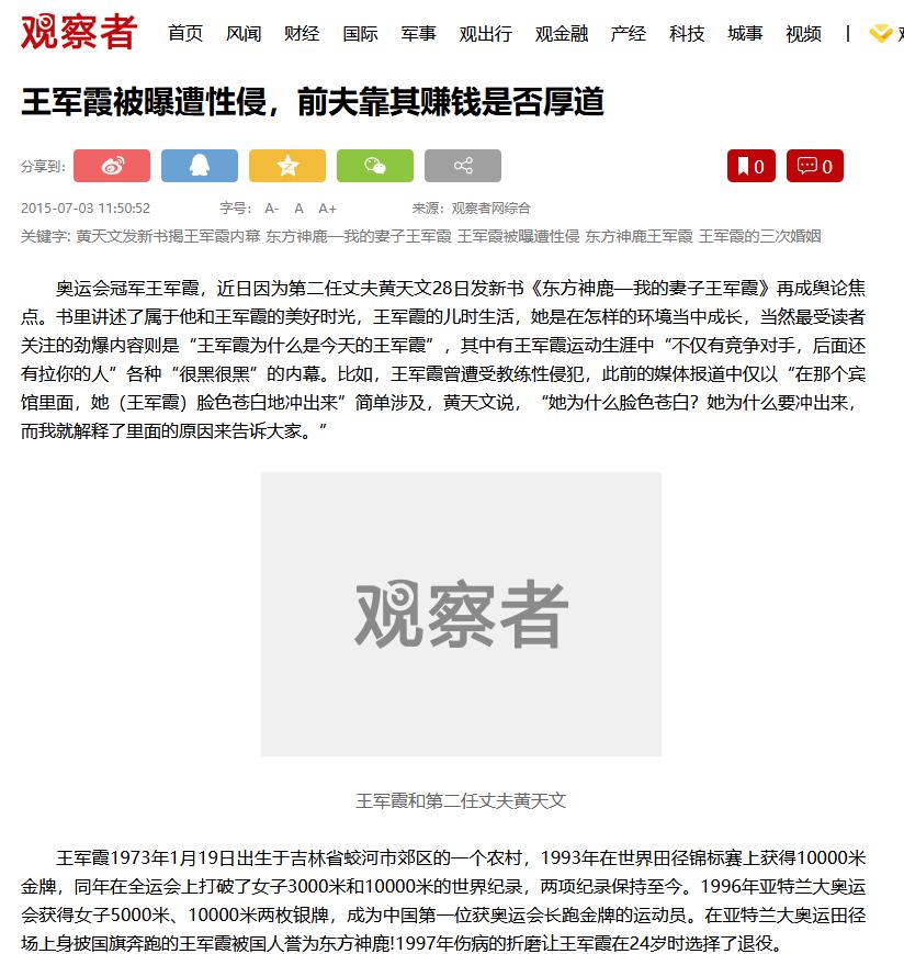 观察者,王军霞被曝遭性侵,前夫靠其赚钱是否厚道