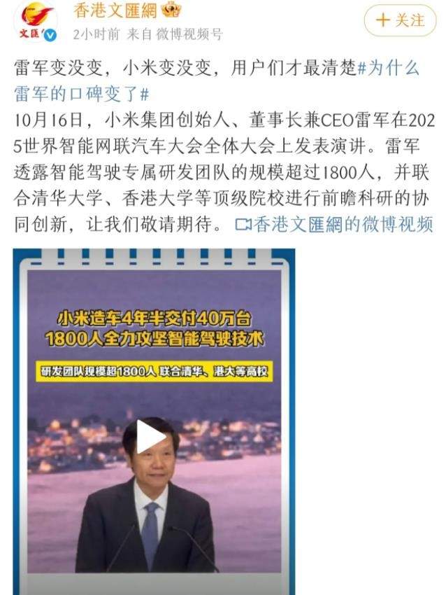 无独有偶,谈到小米的创新,就在10月17日,人民网《交锋栏目》发布了小米集团合伙人、总裁卢伟冰做客的专访视频,并用#从小米转型看中国智造升级#给予小米极高的评价,以及给无数中国科技企业带来无比的信心!