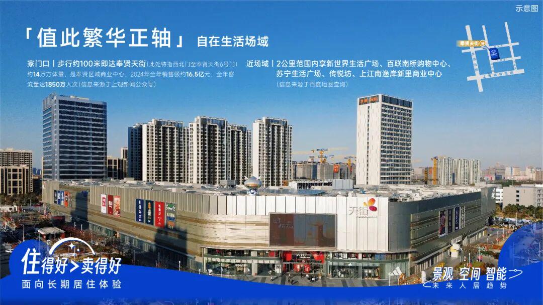 近场域|约2公里范围内享新世界生活广场、百联南桥购物中心、苏宁生活广场、传悦坊、上江南渔岸新里商业中心