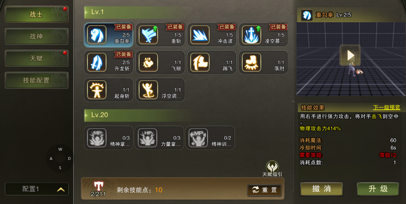 2.升级技能消耗的技能点可通过角色升级获取