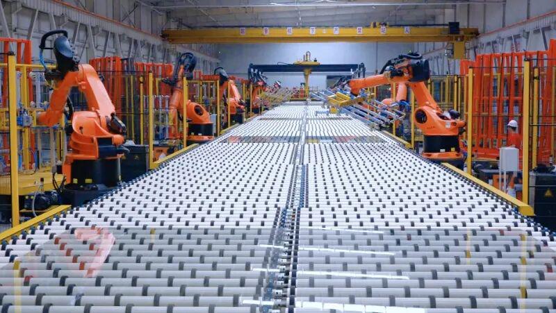 图为沙河市安全实业有限公司1000t/d超厚高透特种玻璃生产线成品工段机械臂抓取玻璃产品。受访单位供图