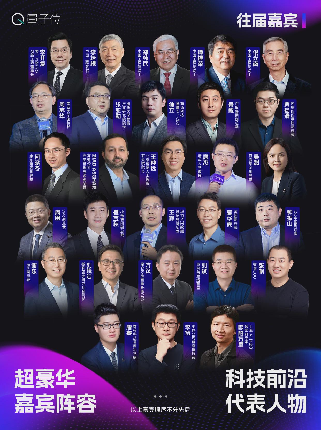 这里既有李开复、张亚勤等产业大咖,也有倪光南、谭建荣、李培根、郑纬民、周志华、唐杰等学术领路人,更汇聚了来自百度、阿里、腾讯、华为、京东、美团、小米、商汤等公司的实干家与新星。