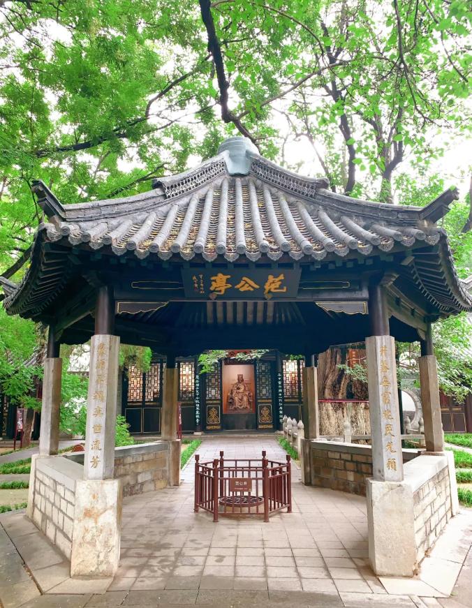 范公亭公园像一幅水墨画展开在眼前,绿意缠绕湖面,李清照纪念祠安静地站在园内一隅。