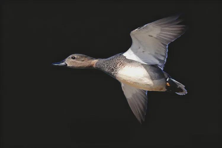 这是赤膀鸭,在分类学上属于雁形目鸭科鸭属,为国家“三有”保护动物。赤膀鸭体长约44 - 55厘米,雄鸟在繁殖期时,头部呈暗褐色,带有黑褐色斑纹,嘴黑色,脚橙黄色 。其最具特点的是上体暗褐色,翼镜呈暗橄榄色,翅膀上的覆羽为棕栗色,在飞行时尤为醒目,如同佩戴了独特的“臂章”;下体白色,胸部具有明显的褐色斑纹。雌鸟羽毛则多为暗褐色,带有棕色或白色的斑纹,整体较为朴素,这种羽色能帮助它们在栖息环境中更好地隐藏自己。赤膀鸭常栖息于江河、湖泊、水塘、沼泽等各类水域,也会出现在临近水域的农田、草地等地方 。它们主要以水生植物的叶、芽、茎、种子为食,也会吃一些软体动物、甲壳类、昆虫等小型无脊椎动物 。赤膀鸭在生态系统中扮演着重要角色,对水域生态的物质循环和能量流动有着积极影响,同时也是鸟类学研究的重要对象。