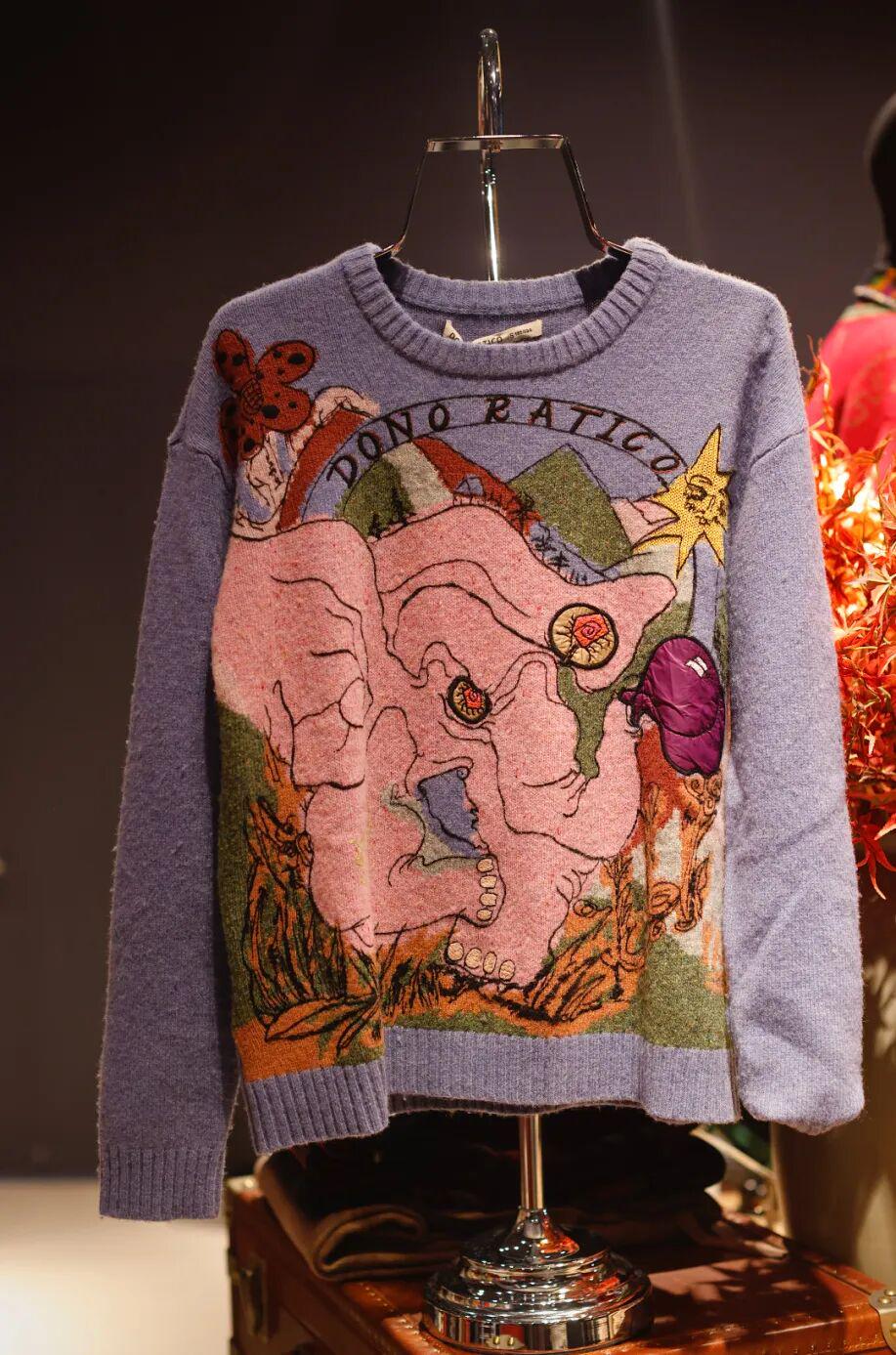 这两件毛衣也很好看,可以单穿或是搭配衬衫,露出衬衫领子,重点是只有2折。黑灰色这件78%羊毛,吊牌价1169元,2折233.8元,叠加9折到手210.4元;另一件童趣十足的毛衣羊毛混纺,吊牌价1139元,2折叠加9折到手205.5元。划不划算?