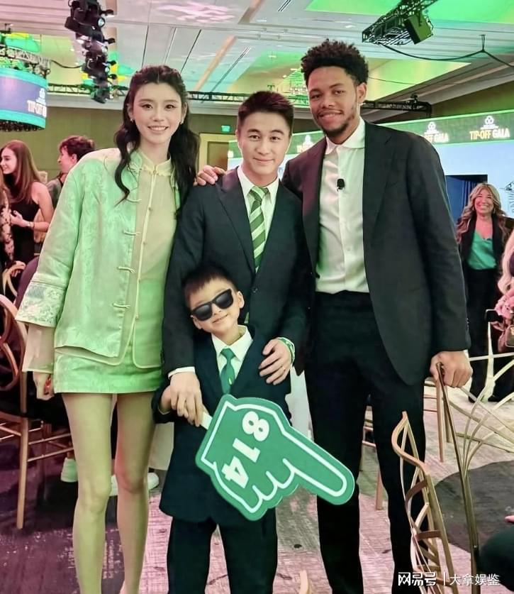 何猷君携妻儿出席凯尔特人队慈善活动,