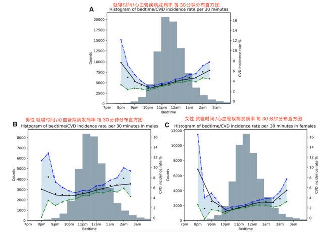 研究人员把这些人分成四组:晚上 10:00 前入睡、晚上 10:00~10:59 入睡、晚上 11:00~11:59 入睡和午夜后才入睡。然后,他们对参与者进行了平均 5.7 年的随访,统计谁在这段时间里新发了心血管疾病(如心梗、中风、心衰等)。