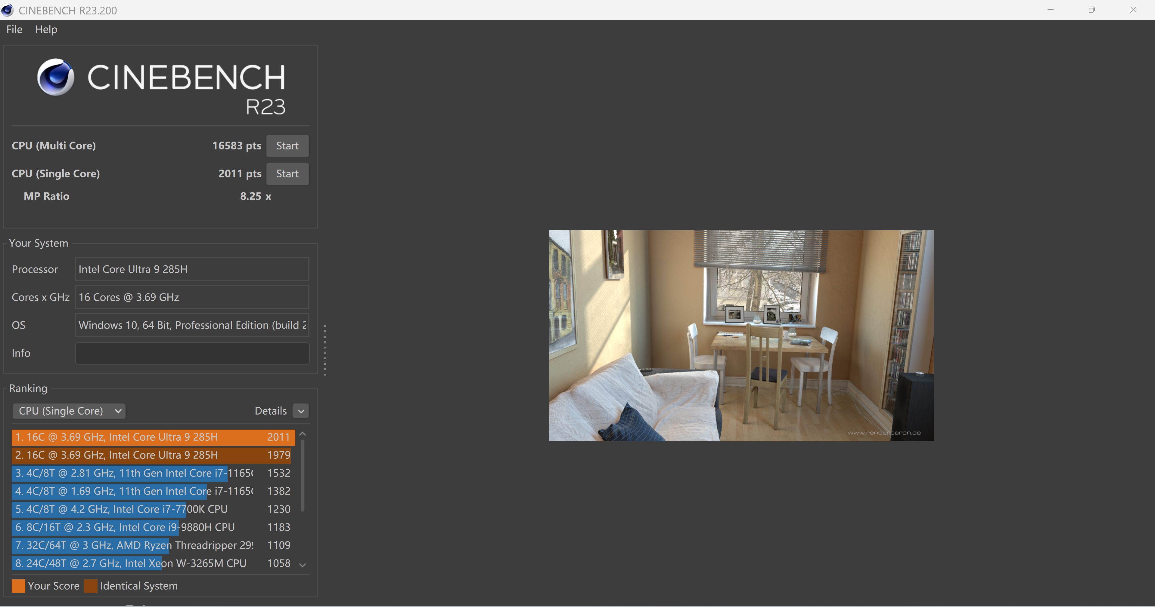 通过几个软件测试对比来看,我们实测Cinebench R23:单核 2011 pts,多核16583 pts,多核性能较 185H 暴涨 30.1%,与上代 185H 相比,单核提升20.66%,多核提升 36.51%,核心性能的提升相当明显。提升这么大,主要是因为,在架构方面,采用了 6P+8E+2LPE 的 16 核架构优化,配合 5.4GHz 峰值睿频,为高负载任务奠定了基础。