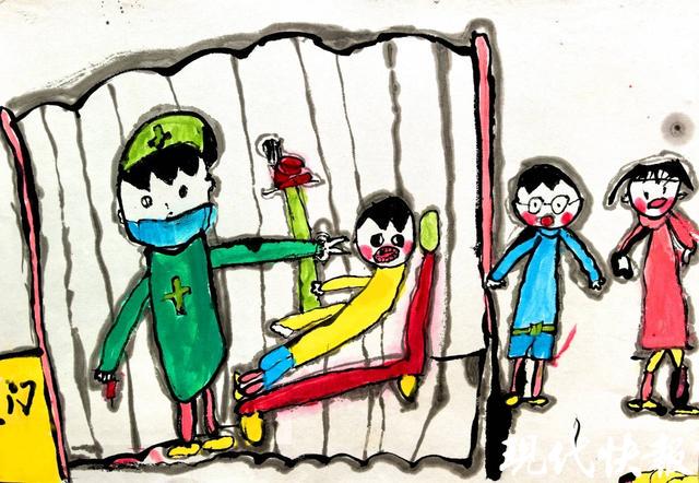此次入选的3幅儿童画作品为《拔牙》《海上旅行》和《别样旋转木马》。9岁的张又一来自睢宁县实验小学,在指导老师韩华的指导下创作《拔牙》。该作品采用水墨与色彩结合的形式,以简洁线条搭配鲜明色块,将孩子们拔牙时的紧张、俏皮等生动神态刻画得惟妙惟肖。儿童画作品《海上旅行》作者为9岁的张嘉树,来自睢宁县新城区实验小学,在指导老师马路的帮助下,张嘉树以明快色彩勾勒出充满童趣的游轮,船上、船内挤满神态各异的人物,无论是咧嘴笑的孩童还是挥手的大人,都鲜活生动,将海上旅行的热闹与欢乐氛围渲染得淋漓尽致。作品《别样旋转木马》的作者是10岁的林佳怡,就读于睢宁县新城区实验小学,由高赛楠担任指导老师,这幅作品堪称“脑洞大开”,以日常生活中常见的晾衣架为创意载体,巧妙将孩子与各类动物“悬挂”其上,尽显少年天马行空的想象力。