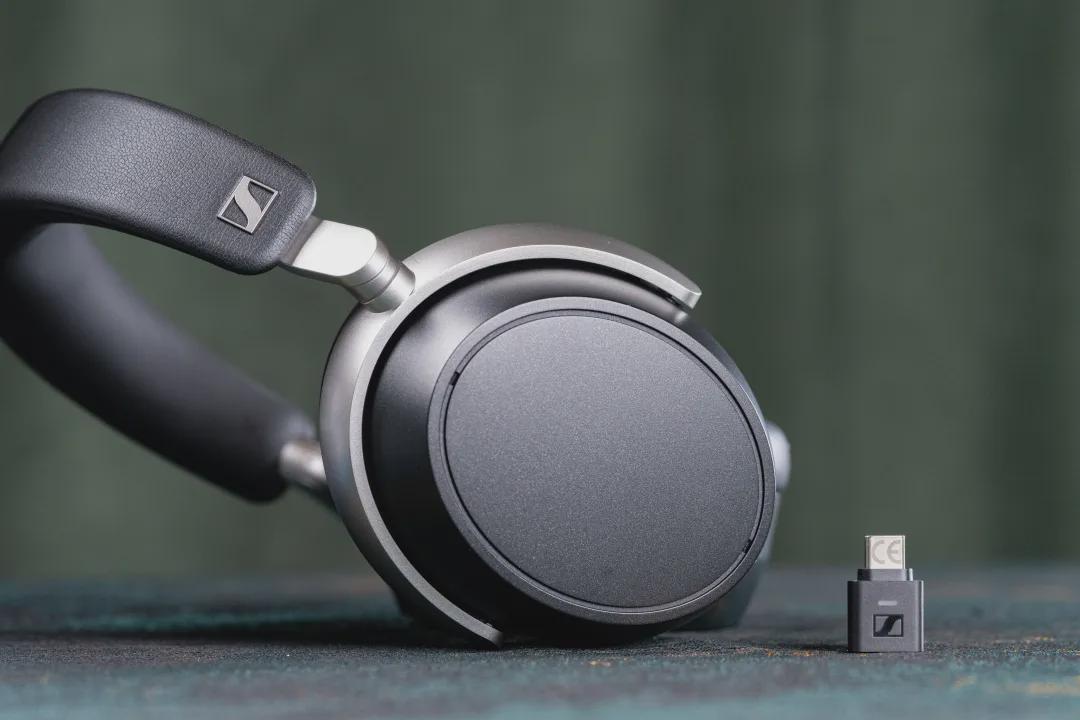 HDB 630的续航最长可以达到60小时,并且充电10分钟就能播放7小时,出差时基本不需要刻意留出时间充电。随机附赠的收纳包有较好的抗压能力,里面的空间分隔正好可以把所有配件分类摆放。细心的老用户可能已经发现,HDB 630的包装里比森海塞尔过往的蓝牙头戴多出了一个独家配件——无线发射器BTD 700。只要将它插在播放器、手机、电脑等设备上,就能够给耳机传输高清音频文件。其实如今有不少前端和耳机品牌为了从源头上保证较高的声音上限,都在开发自己的传输协议。这种做法也不光出现在音频领域,像无线鼠标、键盘等外设领域的产品,也时常会用到2.4G无线技术来获得更加稳定的性能。