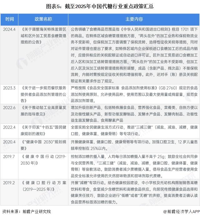 近年来,国家颁布多项健康规划,控制添加糖摄入量,推动全民参与减糖行动,为代糖行业发展提供了基础。国家政策还倡导生产经营者用安全标准允许的天然甜味物质和甜味剂取代蔗糖,推动了代糖需求的增长。中国代糖行业重点政策汇总解读如下: