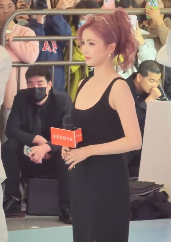 今天的这套粉色头发造型,看上去已经很像网红参加活动了。