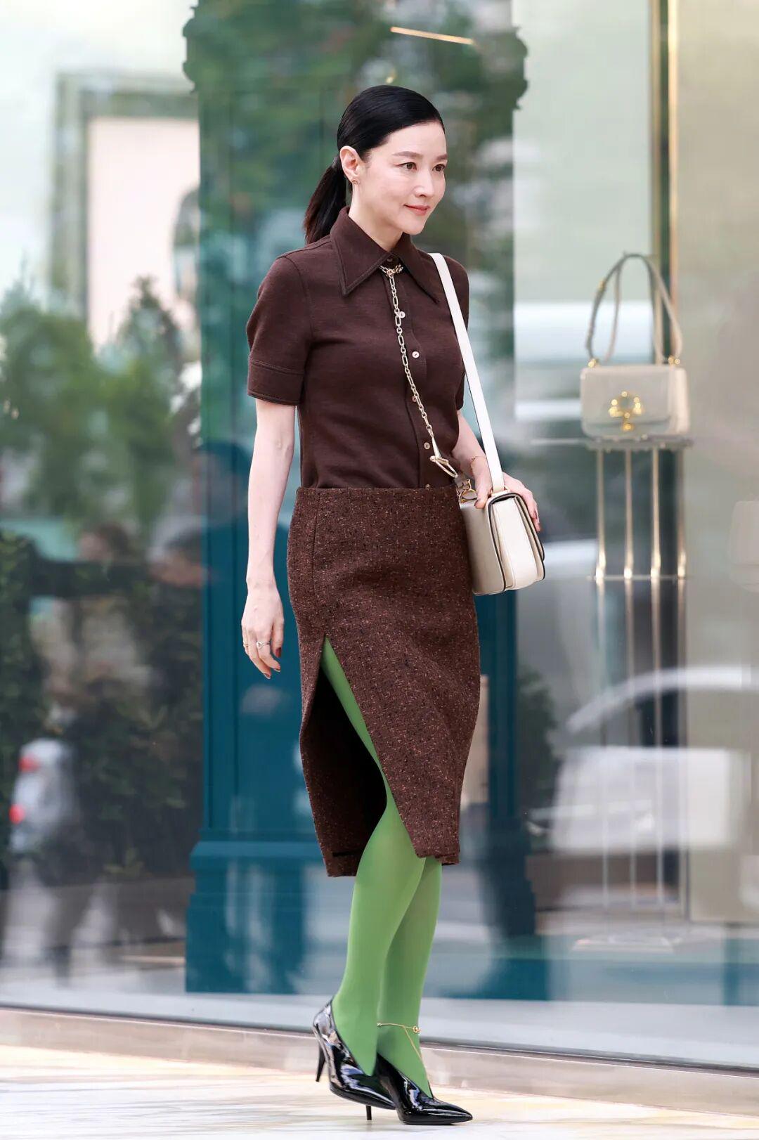 这次出席首映礼穿的 GUCCI,已经与李英爱合作很多次。前不久在首尔出席品牌活动时,一身美拉德色系套装搭配绿色丝袜,大胆、个性,又很有亮点。