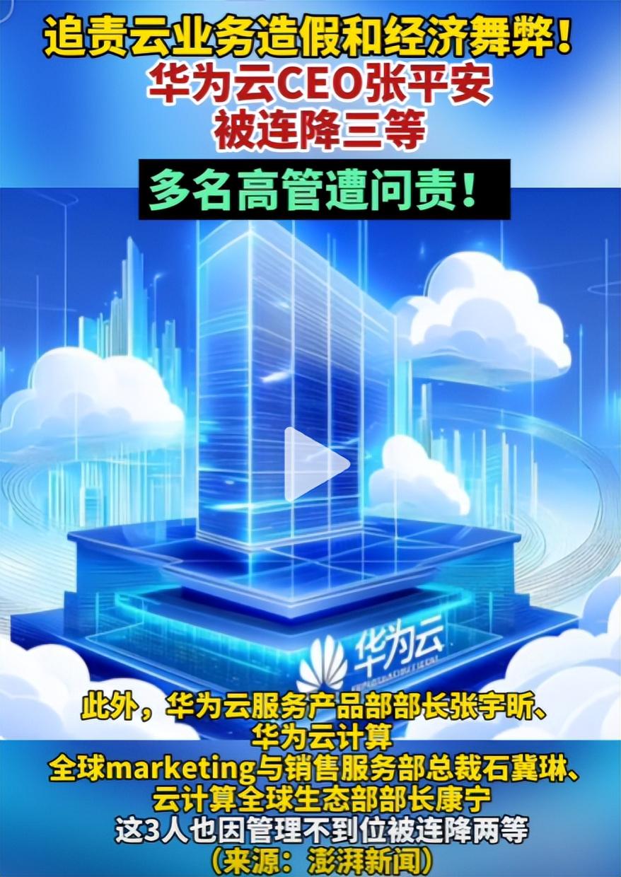不仅多位华为云高管惨遭问责,就连身为华为云CEO的张平安都被迫连降三级。