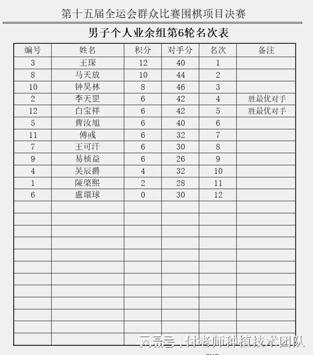 9月中旬,全民围棋团体赛预赛于浙江衢州举行。历经八轮激烈比拼,上海队、山东队、海南队、浙江队、江苏队、安徽队、河南队、重庆队、河北队脱颖而出,分别位列前九名,成功晋级至决赛阶段的赛事。